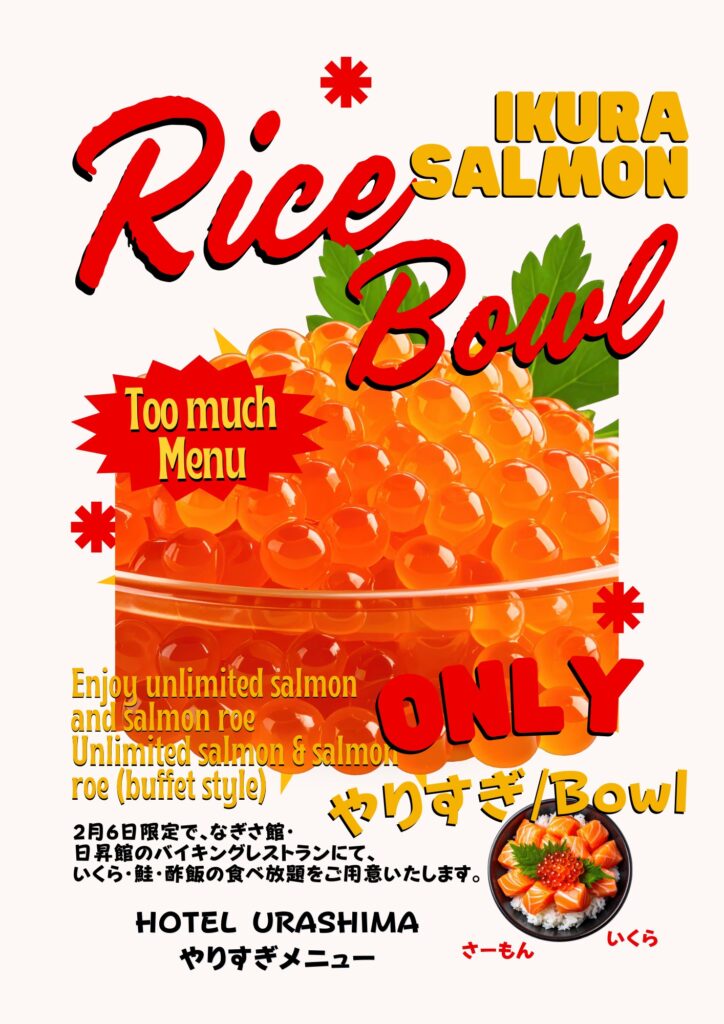 当日は、いくら・鮭・酢飯をバイキング料理としてご用意。