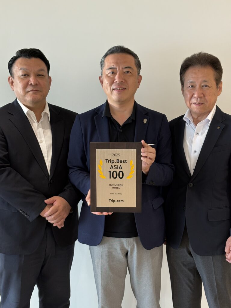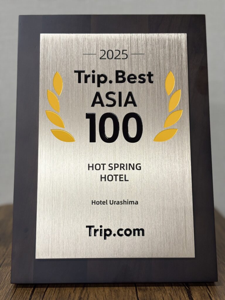 このたび、ホテル浦島は Trip.com 「Trip Best 2025 Asia 100(温泉付きホテル部門)」 に選出されました。