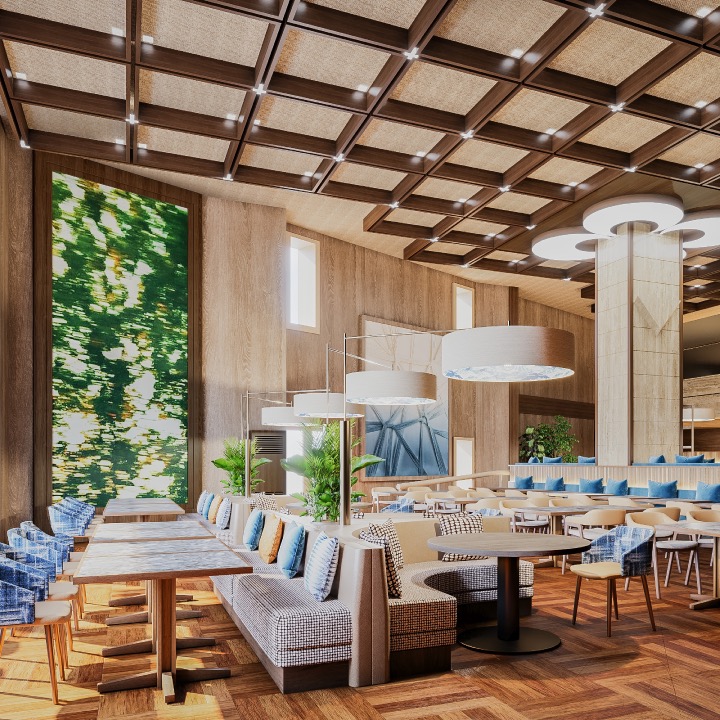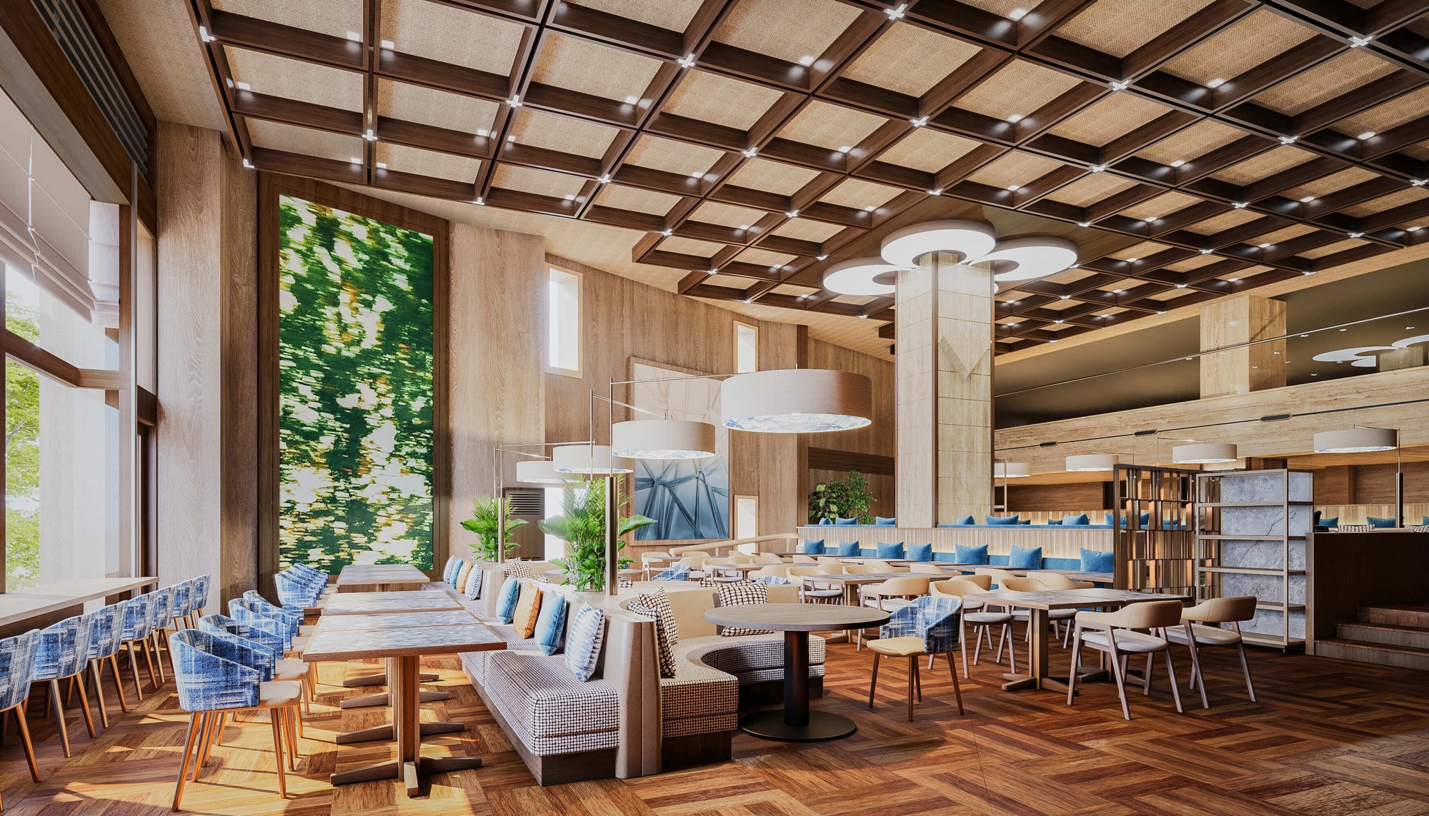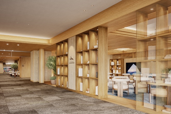 ラウンジの中心に据えた、深淵な美しさを放つ「うらしまブルー」。2026年8月1日オープン予定
