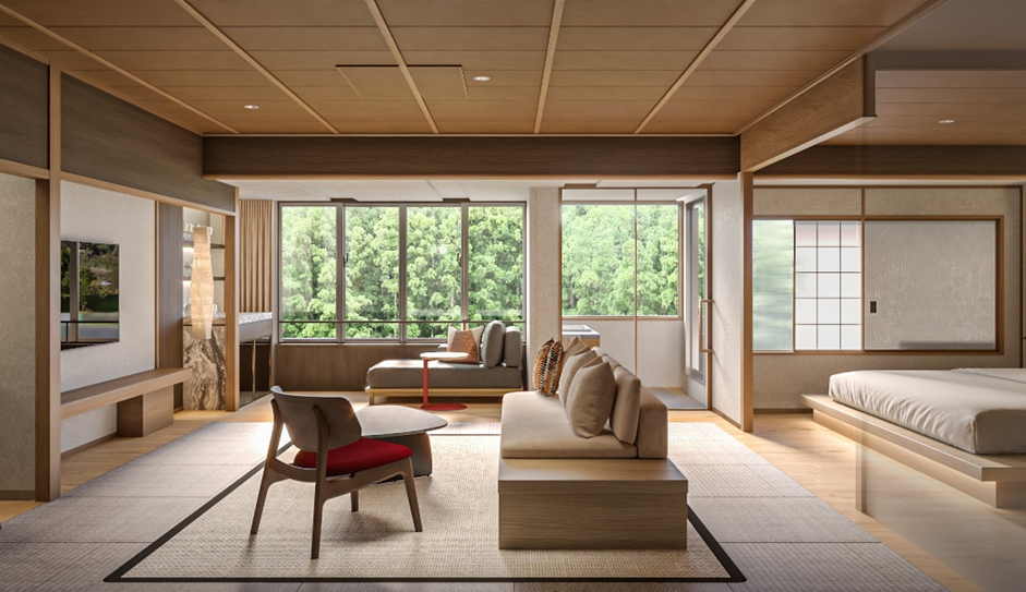 浦島観光ホテル株式会社(本社:和歌山県東牟婁郡那智勝浦町勝浦1165-2)が運営する「山水館 川湯みどりや」は、エントランス・ロビー・露天風呂付客室を中心としたリニューアルを実施し、新たな装いで2025年12月27日にグランドオープンいたします。
