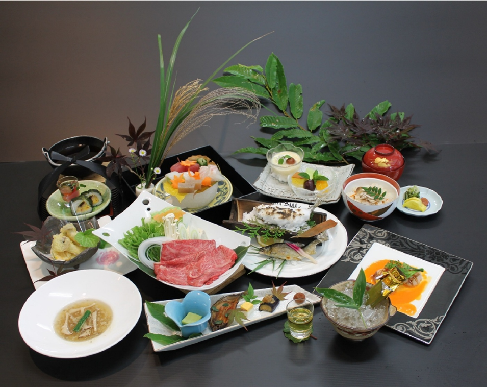 熊野の雄大な自然に育まれたブランド牛「熊野牛」を主役に、地元・紀州の旬の山海の幸をふんだんに取り入れた、上質な和会席です。